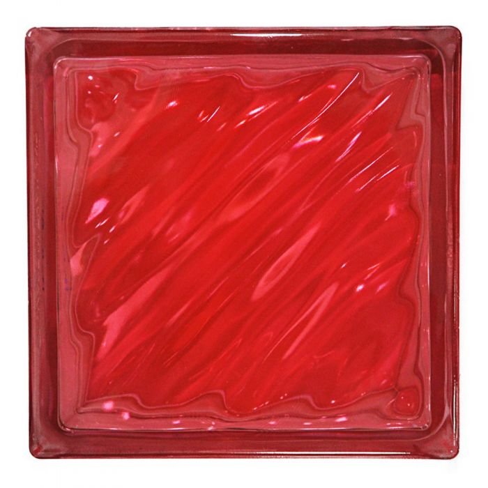 N-009/945 บล็อกแก้วสี 3 นิ้ว คลื่นสมุทร 190x190x80 มม. สีแดง